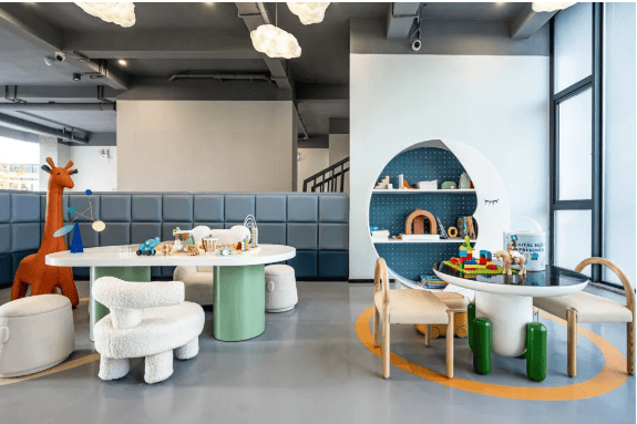 释放童真的年纪,不应桎梏于一方客厅。湖畔云邸配备儿童活动主题架空层,内设滑滑梯、小爬梯等幼龄玩乐设备,色彩丰富的软装,在营造七彩童年氛围的同时,也能很好的保护孩子游乐的安全。融益智、游戏于一体,为孩子们营造出寓教于乐的生活环境。
