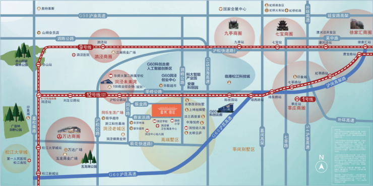 其中作为项目目前更为重要的交通干道,沪松公路和沈海高速,可以自驾快速到达虹桥、七宝、漕河泾已经徐家汇等多个金融中心和商圈。对于有车一族来说,上下班再也不必担心拥堵。