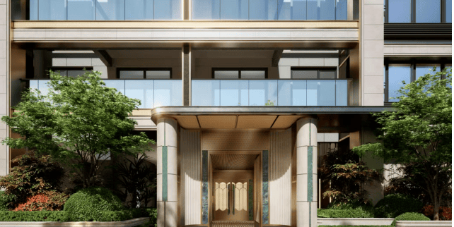建筑设计:整体采用统一的设计语言,高层和叠拼产品全部采用弧形阳台形制,柔性的圆弧搭配简洁有力的直向线条,汲取了海派建筑的精华元素。