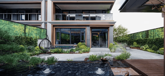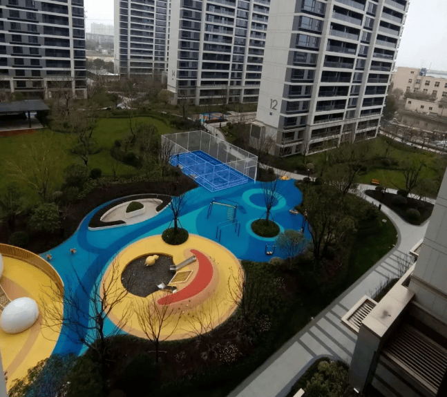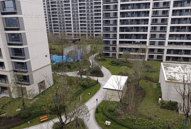 景观设计:一轴两环多节点的社区景观设计,楼栋之间除了基本的步行道,还有颇具规模的绿地和造景,绿化率高达 35% 以上,营造出舒适宜居的居住环境。