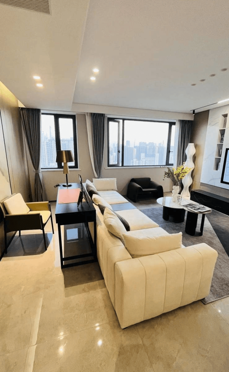 交付标准:精装.软装.家电厨电全配交付 (涵盖中央空调+地暖)
