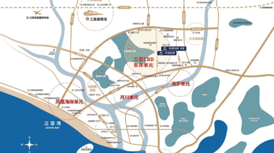 项目位于三亚中央商务区东岸CBD单元,紧邻海旅免税城、中粮大悦城等商业体,周边配套齐全,涵盖学校、医院、公园等,生活便利性高。