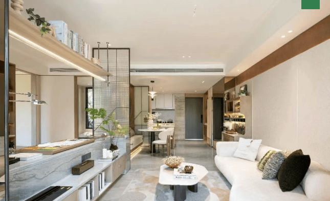 建筑设计:建筑立面以极简线条勾勒现代质感,采用深浅交织的高级配色,回家路线从壹里繁华到迎宾广场,再到闲庭景门、中心花园,具有层层递进的仪式感。