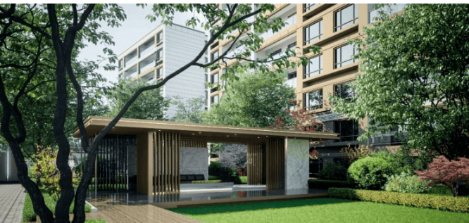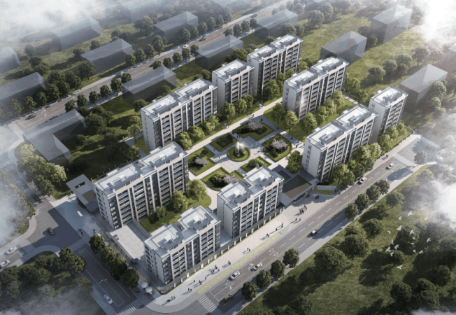规模与产品:总占地约 1.76 万㎡,总建面约 3.99 万㎡,容积率1.55(低密洋房,楼间距宽),绿化率 30.3%;9 幢 6-8 层电梯洋房 + 1 幢社区商业,总户数 238 户,机动车位 270 个,车位配比1:1.1(人车分流);外立面现代简约,电梯洋房均为1 梯 2 户(公摊小、得房率高,私密性强);社区有集中绿地、健身场地、儿童游乐区,沿街商铺可满足日常购物;