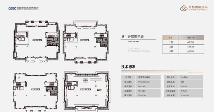 甲级办公:标准户型1304m²,均价2w元/m²,每层2本产证