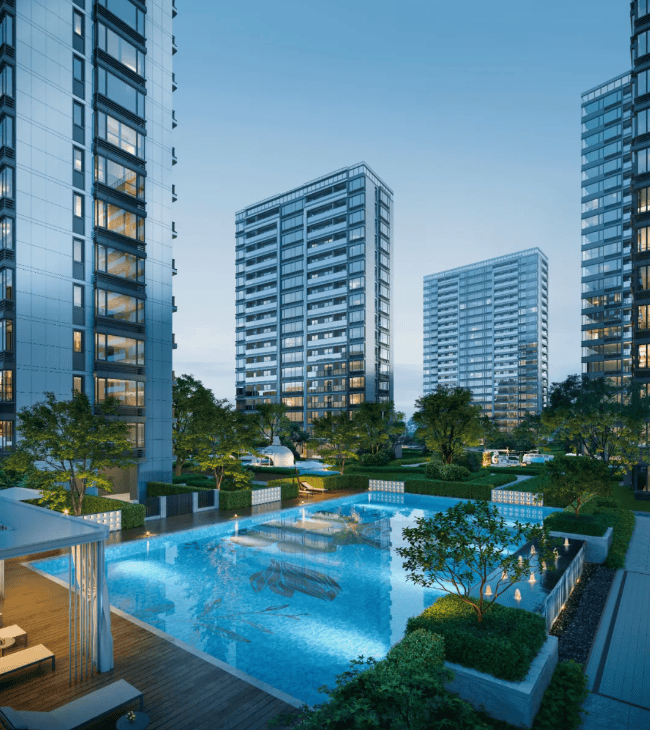 景观布局:整体规划打造南北向景观轴线,采用错落式布局实现 270 度观景面,同时借鉴传统特色空间布局,加入不同的组团及景观空间,打造了多重空间层次体系2。
