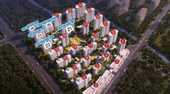 建筑类型:由 15 幢高层,11 幢洋房和 2 幢商业组成。