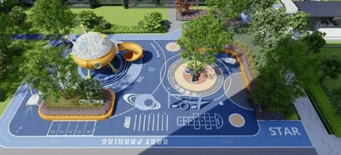 架空层设计:社区内规划打造建筑面积约 1073㎡架空层,设置儿童游乐基地、休闲健身领地、全民阅读空间等,满足全龄化休闲娱乐需求。
