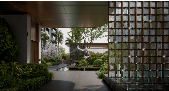 穿行于繁复的静水与林荫间,悦鸣青澜植入度假理念,营造假日游廊会客厅、下沉式落日水吧,尽赏初升的朝阳、傍晚的云霞、满天的星空,感受岁月静好的生活况味。