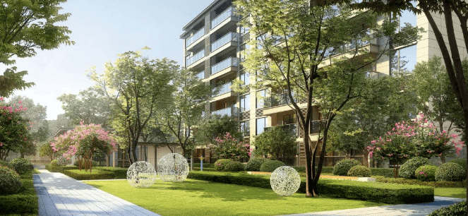 园林景观:中央草坪将绿植与雕塑融为一体,多样化的灌木、草丛、地被花卉,形成高低错落、层次分明的宅间盛境。同时,社区打造为 “健身、休闲、童玩” 一体的全龄生活场,配备健身设施、儿童游乐区、漫步跑道等。
