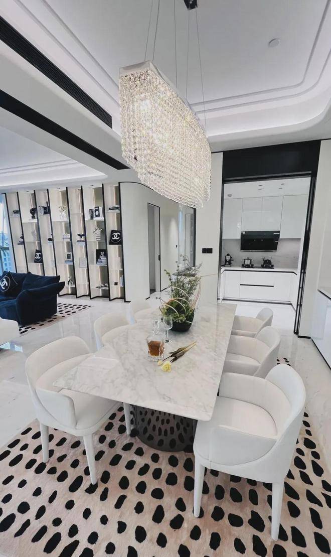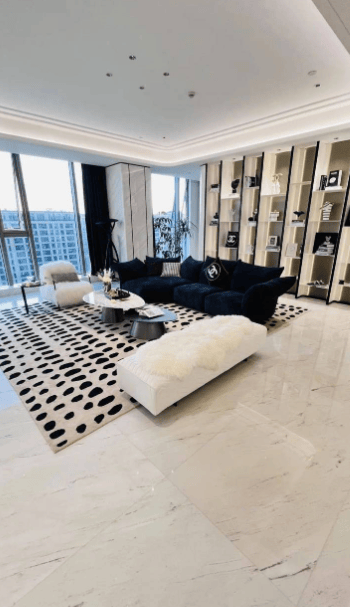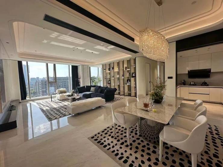 精装标准:装修标准达 16000 元 /㎡,选用当代、劳芬、博世等国际一线品牌。全屋搭载德国摩根智能系统,可实现智能调光、温控、电动窗帘等功能,还配有智能可视门禁与全屋千兆 wifi 无缝覆盖,细节上还有西班牙白洞石西厨、青玉石玄关等配置提升品质。