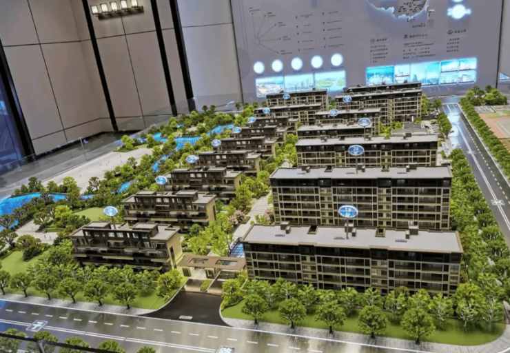 小区由 9 幢洋房和 7 幢叠墅组成,均为一梯两户设计,打造低密社区。建筑风格现代简约,彰显品质与格调。