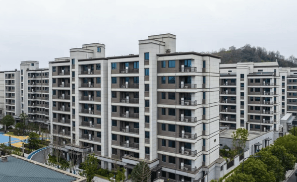小区规划:项目规划有 13 幢 6-8 层住宅单体,采用人车分流设计,电梯直接入户。小区内设置了多个功能区,4# 和 8# 楼中间是老年活动区,8# 和 12# 楼中间是青年活动区,7# 和 11# 楼中间是儿童活动区,还围绕 2#、6#、7#、8# 楼设计了环形跑道。