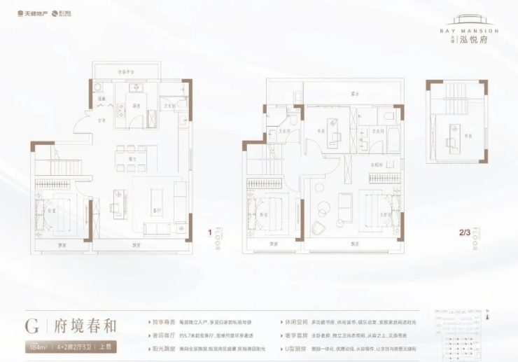 上叠也是184㎡,户型与中叠几无二致,但多了三层,可以做个书房。