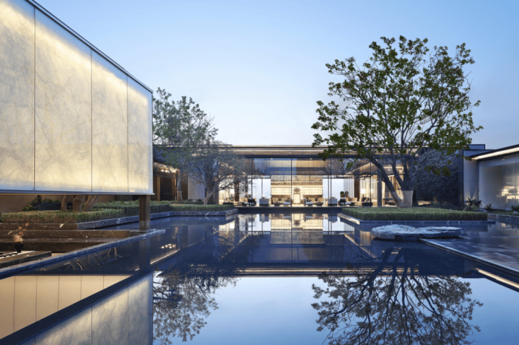 小区入户大堂约 3.0 米高,采用大出挑雨棚、电动平移门等设计,品质感十足。超过 6 成的楼幢有独立架空层,满足业主健康、运动、休闲等需求。还配有户外泳池,由主泳池、儿童泳池、洗脚池、休闲躺椅、休闲吧台等区域组成,移植了棕榈树,营造出度假氛围。