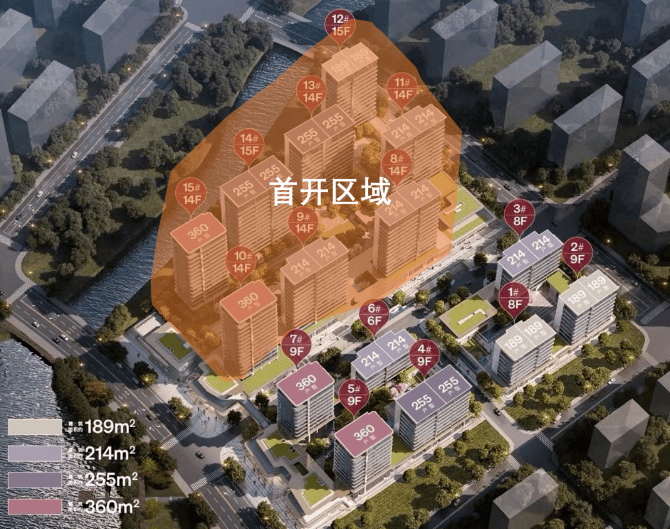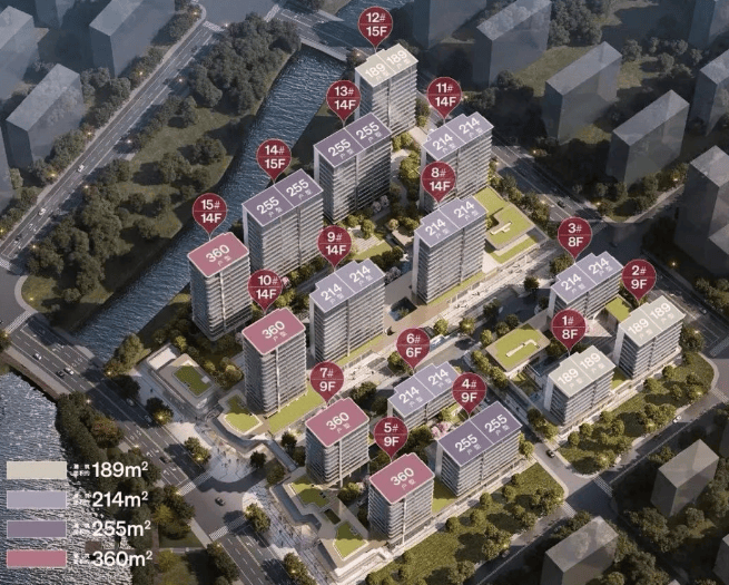面积段:主力户型面积约为 189㎡、214㎡、255㎡、360㎡。