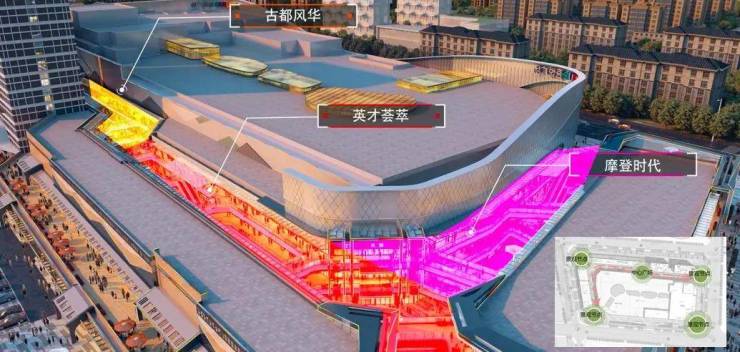 海盐吾悦广场采用一核一带设计,以购物中心为核、室外商业街为带,差异化定位,室外商业街和购物中心双引擎联动,使室外商业街更大程度吸收购物中心客流;同时,室外商业街在购物中心开业后半年交付,开业迅速旺场,大幅缩短养商周期。