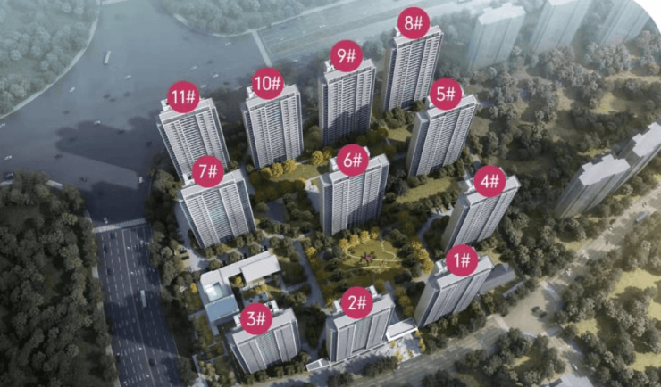 小区规划:项目总占地面积约 42,922.9㎡,总建筑面积约 166,712.01㎡,容积率 2.8,绿化率 30%。规划 11 栋 27 层高层住宅,总户数 1,184 户,物业费 3.3 元 /㎡・月。项目已于 2024 年 6 月 30 日交付,目前为现房销售状态。