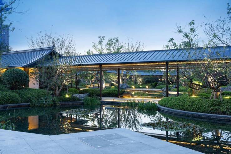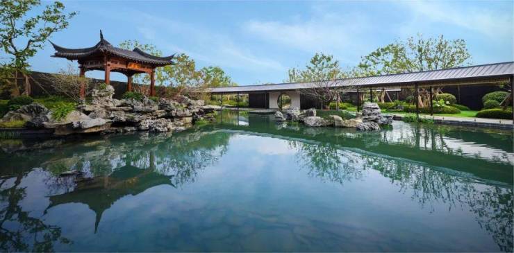 景观设计:师法寄畅园、蠡园中式园林造景技法,打造独特的 “双园规制” 和 “水景长廊”。南园揽水,打造四重水境;北园拥山,打造五重山境。