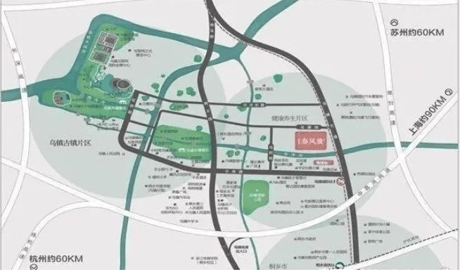 医疗配套:雅达国际康复医院、松龄雅达医养中心、乌镇互联网医院、桐乡第三人民医院。
