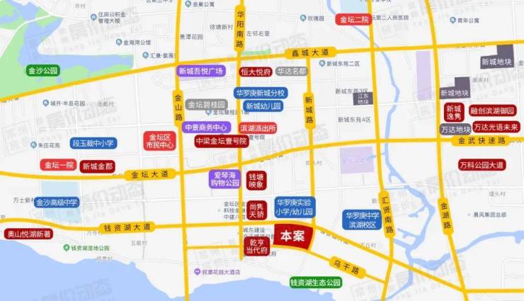 项目位于金坛最热门的滨湖新城,随着金坛区政府的搬迁入驻,河海大学常州新校区的落址,区域内各项醇熟配套逐渐完善。