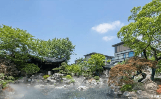 师法苏制:以苏州网师园为蓝本,通过理水叠山、一步一景的造园手法,将江南园林的诗画意境搬进社区,叠石成山、流水潺潺、草木芬芳,营造出四季有景的园林景观。