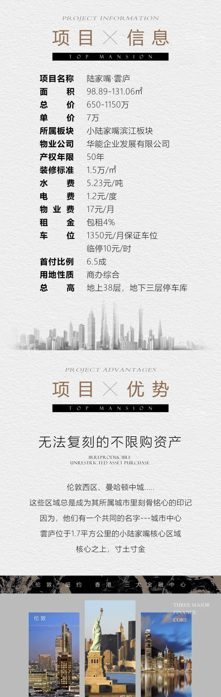 陆家嘴上海中心旁「陆家嘴·雲庐」不限购行政公馆,在售面积约98-131㎡1-2房,现有少量房源在售;总价7字头起拥内环内品质不动产,投资,自住皆宜。