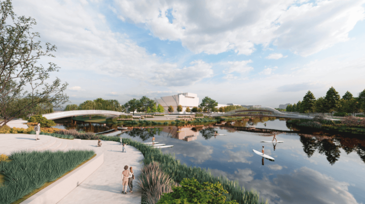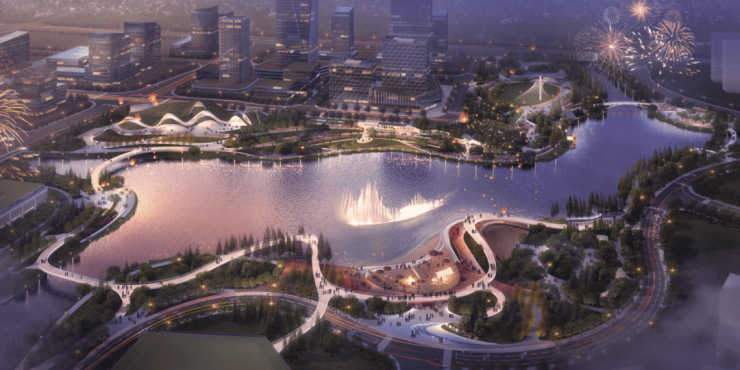 今年,嘉兴经开区提出了“建强主城区 打造主平台 构筑新门户”的新发展定位和“一轴、三廊、四片区、十二城市单元”的新空间格局。双溪湖超级未来社区正是十二个城市单元之一,作为国际商务开放枢纽示范区的重要功能单元,它南接高铁新城核心区、西临中央公园,北至长水路、东至庆丰路,规划总面积约5.3平方公里,明确打造“以公共服务为牵引的区域开发建设模式”为引领,由多个未来社区有机聚合而成,是创新、生态、共享的微型城市。