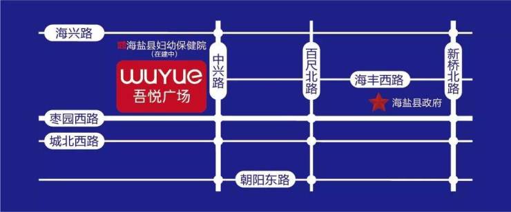 海盐吾悦广场位于海盐城西热点板块,地处枣园西路与中兴路交汇处,雄踞规划中芯、政务中芯、交通中芯、文教中芯、人居中芯五大中芯之上,再造繁华中芯,未来升值潜力与日俱增。