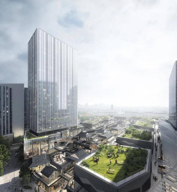 苏州华贸中心位于历史文化名城苏州市中心金阊区著名的石路商业街区内,占地面积为13.3公顷,总建筑面积78万平方米,北临上塘街,西临丰桥路,南临金门路,东临广济路,以地铁2号线通达全市。项目汇集多个国际著名设计团队,KPF在本项目中负责总体规划设计以及主体部分建筑设计,其中园林式商业街由OVAL设计,高级公寓姑苏里·LAVIE由GAD设计。