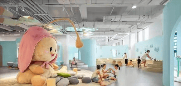 高层一楼架空层设置多功能主题泛会所,共享书吧、无风雨健身区、四点半课堂、和微沙龙等配套,立体的补充了园区内没有的设施和配套,让整个园区和架空层无缝连接,做到真正意义上的全龄成长社区。