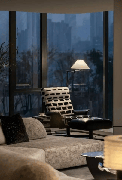 建筑风格:采用流体曲线设计,以棕色铝板勾勒横向线条,形成独特的建筑外观。