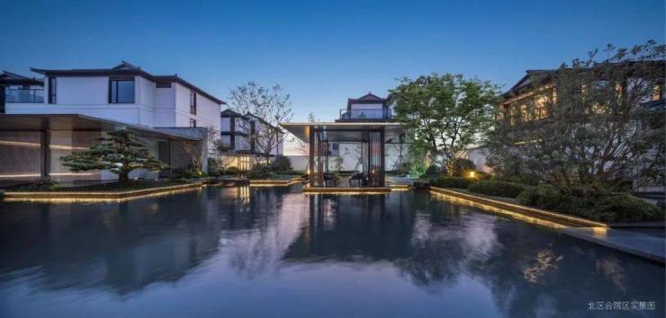 闲庭回廊后,悠然见碧湖。低密住区中罕见的双中心水院,与品莹剔透的现代玻璃建筑相映相融,临水观照,品茗舒体,逸趣自生