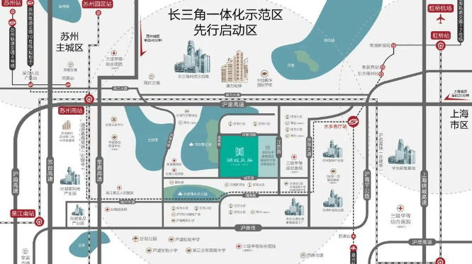 轨道交通:距离在建苏州南站约 5-7 公里,未来可换乘苏州轨交 10 号线,衔接上海 17 号线、嘉兴 3 号线。