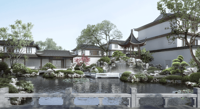 园林景观:汲取王维《辋川图》造园巧思,以 “引画入园・九境九感” 为蓝本,打造园林景观。