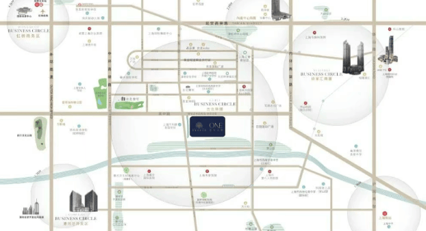 生态健康:3 公里左右有桂林公园、绿地主题公园,1.5 公里左右有虹桥高尔夫俱乐部,还有天辰网球俱乐部古北网球场、上海国际舞蹈中心、上海儿童博物馆等