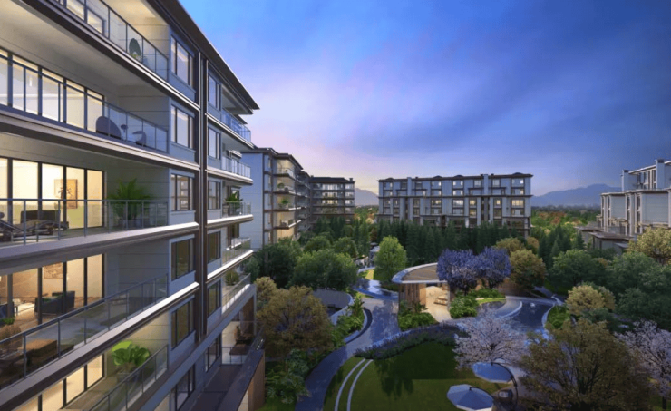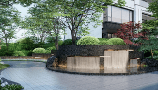园林景观:小区采用 C 字形围合布局,打造了 “龙隐礼序大境”,以 “一条龙脉” 为轴线,串联起 “六重园境”,入口有 “鱼跃龙门” 水景和龙鳞墙,景观中庭以龙栖息云游的山水胜境为灵感设计。