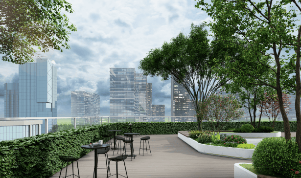 景观布局:以 “空中花园” 作为整体概念,以 “一轴两廊三节点” 作为设计理念,打造 4 大功能空间 + 2 个风雨连廊 + 多个活动场地,覆盖全龄段的需求。