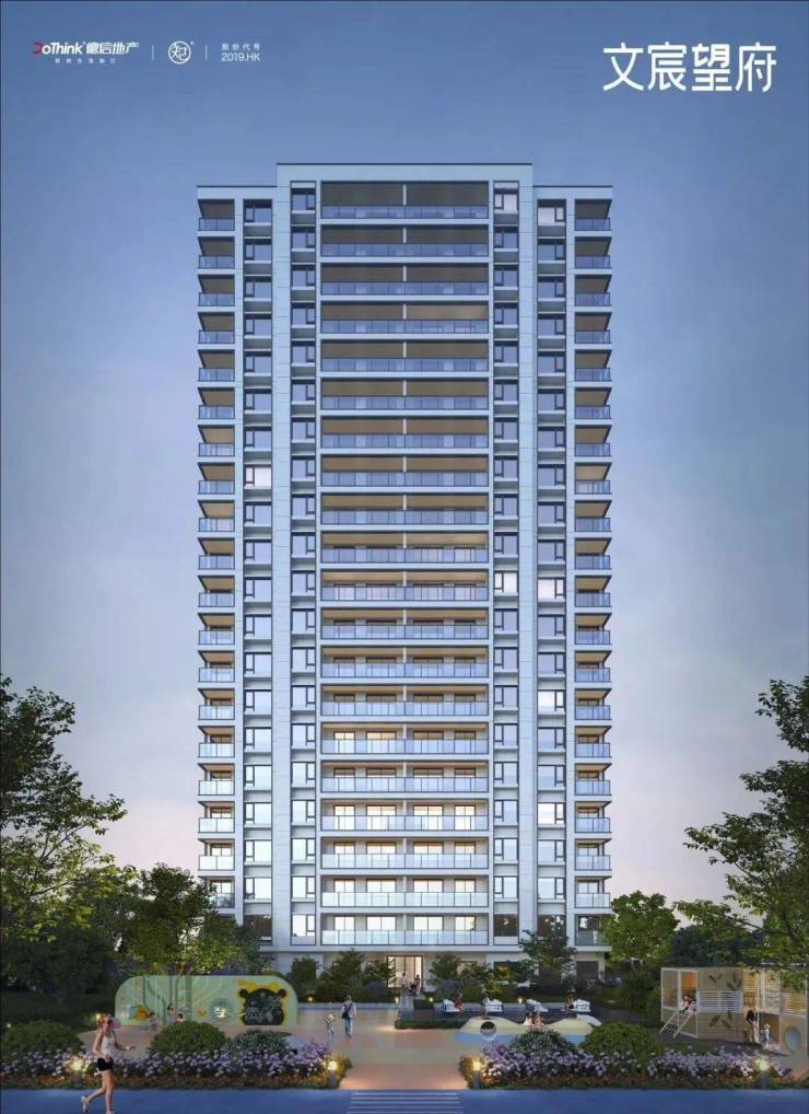 德信文宸望府采用现代简约风格的立面设计,玻璃面+真石漆立面,高窗墙比,视觉与品质双享受。简约的立面风格,使得建筑更加通透、现代,提升了整体项目的品质感。