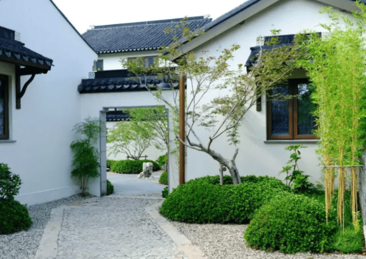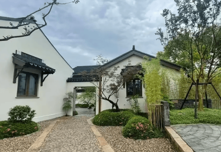 外立面:纯中式风格,粉墙黛瓦、老石板街巷,融合传统水乡肌理与现代工艺。