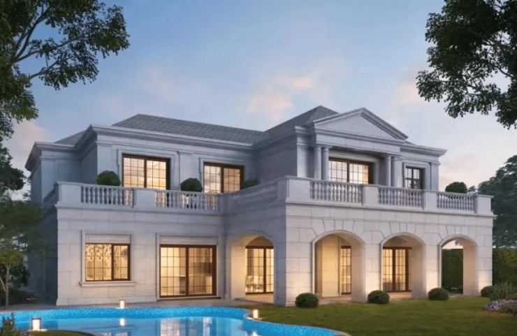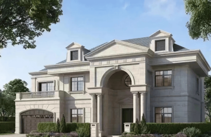 『绿宝园·翡梵』以其保加利亚的维纳多天然石材立面为基础,呈现出文艺复兴、巴洛克、新古典主义3个特定历史时期的法式经典风格。