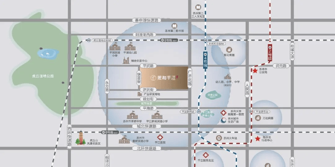 文旅配套:虎丘湿地公园、苏州第二图书馆、苏州第二工人化宫