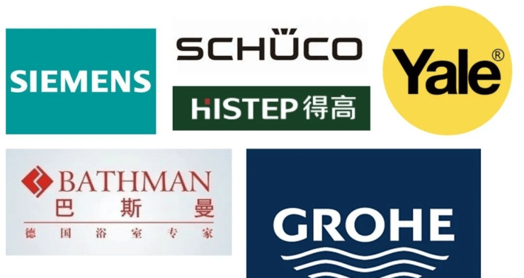 甄选国际一线品牌 精奢全装: 精选国际一线大品牌,全线奢装助力高品质空间。德国高仪等卫浴品牌 / 德国旭格门窗系统 / 美国耶鲁门锁 / 比利时得高地板 / 西门子等电器品牌……全屋配置电磁炉、油烟机、冰箱、洗衣机、微波炉或微烤一体机。