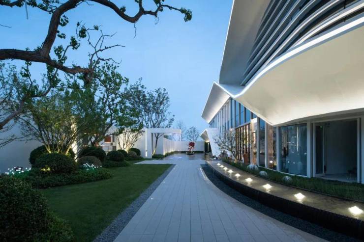 售楼处的前场空间,作为景观体验的最后一个空间,希望营造一处艺术与静谧的空间。