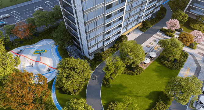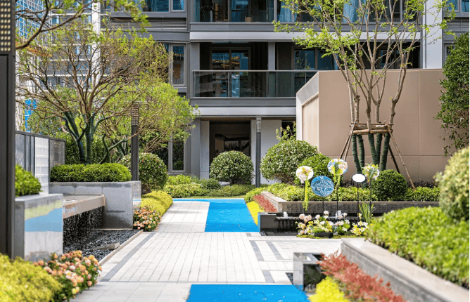 景观布局:整体规划打造南北向景观轴线,采用错落式布局实现 270 度观景面,同时借鉴传统特色空间布局,加入不同的组团及景观空间,打造了多重空间层次体系2。