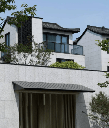 新中式合院 + 私家庭院:白墙灰瓦 + 日式合瓦屋面,每户私家庭院 50-200㎡,地上 2-3 层 + 地下 1 层,空间灵动,私密性强。