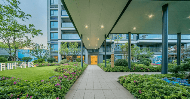 低密园林:采用“一轴两环两心十花园”布局,绿化率约30%,居住舒适度高。