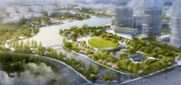 生态配套:周边规划双溪湖公园(规划)和城市水岸公园(规划),且近邻占地约 3300 亩的嘉兴中央公园。