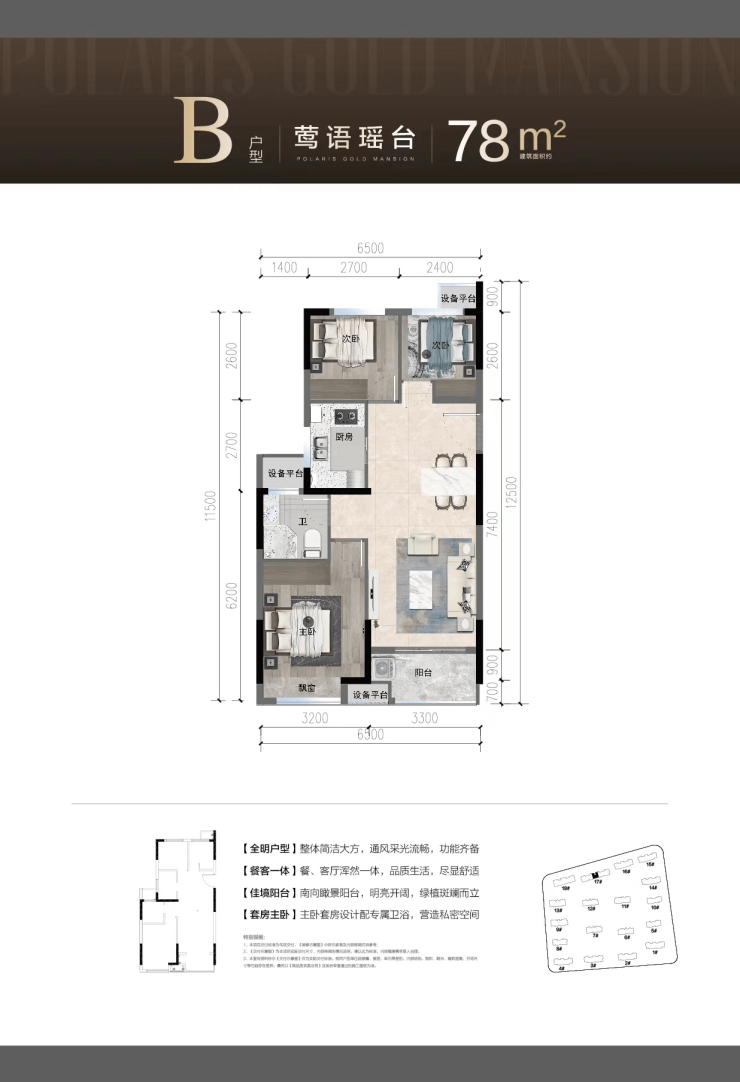 【产品户型】:72平2/2/1,78-81平3/2/1,89平3/2/2,103平4/2/2