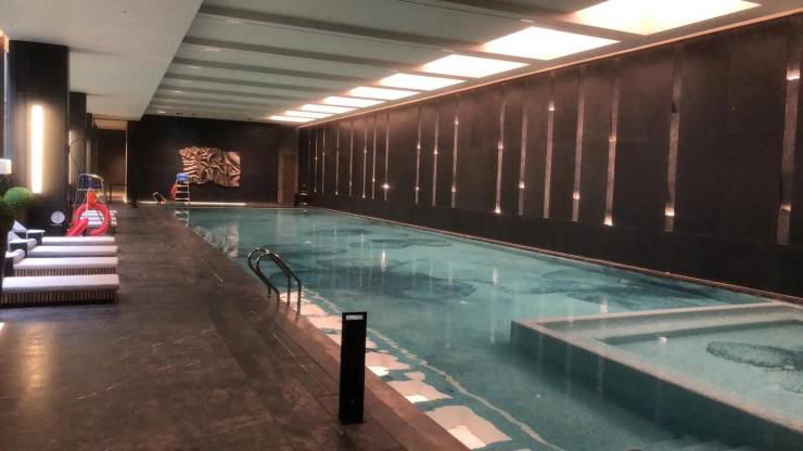 采用现代简约外立面,搭配大面积玻璃幕墙与金属线条。精装交付标准约 3000 元 /㎡,配置中央空调、地暖、新风系统三大核心系统,并搭载全屋智能联动系统。小区还设有 1400㎡星级泳池和禅意会所,提升了居民的生活品质。